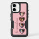 Design your own phone case with this pretty pink photo template iPhone 16 Otterbox phone case with space to add 4 custom photos. Upload your favorite pictures and customize the name with your personalization. A great gift for Grandma when you add your own photos of the grandchildren. Features a soft pink cover with glitter heart backgrounds on the heart photo templates.