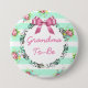 "Grandma to Be" Baby Shower Button Mint Green and Pink Floral Roses Pattern