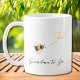 This coffee mug is decorated with watercolor honey bees and "Grandma to Bee" in stylish script typography.