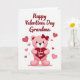 This Valentine's Day card shows a round pink teddy bear with rosy cheeks and a small red bow at its neck, standing near the lower center. The bear has a simple, sweet face and holds a large deep-red heart close, like a hug you can give. On that heart, the words “I Love You” appear in smooth white cursive lettering, centered and easy to read. Above the bear, “Happy Valentine’s Day Grandma” is written across the top in red cursive-style letters, making it clear who the card is for. Small hearts in shades of pink and red float around the bear on a white background, giving the scene a light, loving feel. It feels meaningful because it’s gentle and direct, like saying “you matter to me” without needing a lot of extra words 🥰. It’s a sweet way to show care for a grandma you love ❤️.
