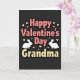 This card features a deep black background that makes the colors pop in a cozy way. In the center, the text reads “Happy Valentine’s Day Grandma” in stacked letters that are easy to notice. “Happy Valentine’s Day” is coral pink with small white polka dots, and it has a slight shadow that makes the letters look a bit raised. Just below, “Grandma” appears in a soft yellow with the same dotted pattern, tying everything together. Small hearts in light pink and pale yellow float around the words like confetti, adding a sweet, loving feel ❤️. On each side near the word “Day,” there are two simple white bunny shapes, standing still and gentle, like quiet little guardians. It feels meaningful because it’s affectionate without being too serious, and it’s a warm way to remind your grandma she’s loved 🥰—perfect for sharing Valentine’s Day feelings with someone special.