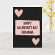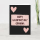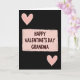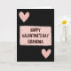 This Valentine's Day card features a deep black background that makes the soft pink shapes stand out right away. In the center, there’s a wide blush-pink rectangle with slightly uneven, brushy edges, like it was painted by hand. Across that pink banner, the words “HAPPY VALENTINE’S DAY GRANDMA” appear in rounded, dark crimson letters that feel friendly and easy to read. A matching pink heart sits near the top-left corner, and another heart rests near the bottom-right, balancing the layout. The hearts and the banner have a lightly textured look, with small variations in the edges that keep it from feeling flat. The strong contrast between the black background and the pink and red tones makes the message feel focused and heartfelt ❤️. It’s a meaningful card to give because it keeps the attention on Grandma and the love you want to show her, without needing anything else 🥰. Hope it helps you share warm Valentine’s Day feelings with someone you care about.