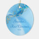 Grandma's First Christmas white Snowflakes set on a beautiful ombre blue snowflake background with a fancy gold scroll flourish Grandma Ornament. A Wonderful grandparent Christmas gift sure to be treasured for many years to come. Visit us at our shop for a large variety of grandparent ornaments in over 40 grandparent names!