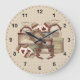 "This beautiful design features a mixing bowl, cookie mix, coffee, tea, oven mitts, rolling pin, and a canister set on a tan background with soft light tan polka dots."