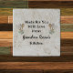 Personalize this Made For You With Love From Grandma's Kitchen trivet with the name and title of your favorite baker or chef. Kitchen and baking utensils with flowers adorn this trivet for an adorable keepsake or family heirloom suitable for any celebration or family get together. Customize for any family member, or you can leave out the title and put in a first name and last name instead. This personalized trivet makes a great gift for mother's day or as a housewarming gift.