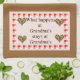 My original artwork, "What happens at Grandma's, stays at Grandma's" with heart shaped chocolate chip cookies, red gingham check border. Choose a different color background if desired.