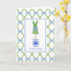 This personalized topiary note card design features a very chic blue and green lattice patterned background with a coordinating bunny shaped topiary in a blue and white chinoiserie ginger jar vase. The inside is left blank for you to write your personal message, or purchase 8-10 cards and package them up with a beautiful bow for a one of a kind hostess gift.