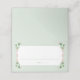 This Christmas place card design has a holly leaf on the left and right edges. The inside have a light green scalloped stripe pattern.