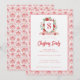 This Christmas party invitation has a preppy grandmillennial design featuring a floral crest surrounded with berries with a monogram letter in the center. The front and back have a coordinating damask pattern.