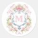 Grandmillennial Floral Crest Monogram | Bridal Classic Round Sticker