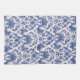 This towel features grandmillennial design featuring a navy blue damask pattern on a blush pink background.