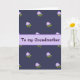 This greeting card features a nostalgic, pixel-style design that feels gentle and affectionate, like a quiet nod of love across generations ❤️. A wide lavender banner runs horizontally through the center, drawing your eye the way a warm embrace pulls you in. Centered on the banner, the words “To my Grandmother” appear in a darker purple, with a pixelated look that keeps the message clear and sweet. Behind it, a deep indigo background sets a calm nighttime tone, letting the softer colors stand out without feeling loud. Scattered across the backdrop is a repeating pattern of small flowers, each one built from tiny square shapes that suggest careful attention and tender care. The blossoms show soft violet petals with little golden centers, as if they’re glowing gently, and they sit on simple green stems and leaves 🌼. The banner edges look crisp and squared-off, and the flower pattern repeats evenly across the deep purple field.