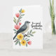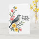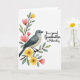 This design shows a soft, watercolor-style nature scene on a bright white background, centered on a small songbird perched calmly on a curving brown branch. The bird’s feathers blend blue-gray and creamy white, and its dark eye and slim beak give it an attentive, gentle look, as if lingering close to someone it trusts ❤️. Along the branch, fresh green leaves frame clusters of coral-pink tulip-like blooms and sunny yellow flowers with deeper centers, creating a tender, close-knit garden moment. The branch sweeps in from the upper left and guides your gaze toward the open space on the right, where the message sits comfortably without crowding the artwork. The text reads “For a special Grandmother on Mother’s Day,” set in black, flowing cursive lettering, aligned to the right side of the card. The contrast between the dark lettering and the airy background keeps the words easy to read while the flowers seem to lean toward them with quiet affection 🌼. Soft edges and gentle color fades give the petals and feathers a brushed look, and the blossoms cluster near the bird while the white space stays open around the right-hand text. The coral-pink petals and yellow blooms sit closest to the bird on the left, while the black cursive message rests on the right against the white background.