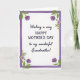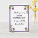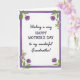 Designed with a bright white background, this Mother’s Day greeting features a centered message that speaks directly to a grandmother with a loving, close-to-the-heart tone ❤️. The main text sits in the middle and reads “Wishing a very HAPPY MOTHER’S DAY to my wonderful Grandmother!”, with “HAPPY MOTHER’S DAY” standing out in uppercase lettering while the surrounding words appear in a more flowing letter style. A thin rectangular frame in soft lavender surrounds the wording, and its edges look lightly brushed rather than sharply printed, adding a gentle, caring touch. In each corner of the frame, clusters of flowers and leaves lean inward as if they’re quietly gathering around the message 🌼. The blossoms shift between pale violet and deeper purple, while the leaves are a fresh green that makes the cooler tones feel tender and welcoming. Some flower centers carry small hints of yellow, like tiny warm glows that soften the purple palette. The four corners each hold a matching floral cluster with purple petals, green leaves, and a few yellow accents against the white space.