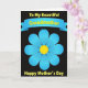 This card features a large, stylized flower centered on a deep black background, creating a dramatic stage for a loving message ❤️. The bloom has eight rounded blue petals arranged evenly around a glowing golden circle, like a warm hug held at the center of the design. Each petal shifts from deeper blue at the outer edge to a lighter aqua tone closer in, giving the flat artwork a gentle sense of depth and closeness. Above the flower, a curved blue banner stretches across the top, suggesting an embracing arc that frames the greeting. Inside the banner, bright yellow text with a thin black outline reads “To My Beautiful Grandmother,” placed neatly to follow the curve. Below the flower, a second line of matching yellow text with a black outline reads “Happy Mother’s Day,” centered and easy to spot, with a small 🌼 accenting the cheerful look. The overall palette stays high-contrast—black, blues, and yellows—while the banner and flower remain the main visual anchors. The blue banner shows a soft gradient from darker to lighter tones as it curves above the flower.