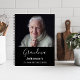 A chic black background. Personalize and add a photo, a name and a text. White text.