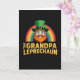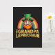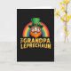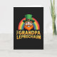 This greeting card features a cheerful cartoon leprechaun facing forward with a friendly grin that feels like a warm wink to someone you care about 💚. His plump rosy cheeks and fiery orange beard and mustache frame his face, giving him a grandpa-like sweetness that reads as affectionate rather than mischievous. He wears an emerald green top hat with a black band, a gold buckle, and a small shamrock detail ☘️. Behind him, a full rainbow arcs like a glowing backdrop, wrapping the character in color against a deep black background. The contrast makes the greens, oranges, and rainbow tones stand out, like the scene is lit just for a close friend or favorite family member. Centered below the leprechaun, the title “THE GRANDPA LEPRECHAUN” appears in large gold-gradient letters with dark shading that gives it a raised, 3D look. The words sit neatly along the lower portion of the design, with the rainbow curving above and the leprechaun’s hat and shoulders clearly outlined against the black.