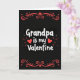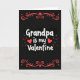 This card shows a deep black background with coral-red curls at the top and bottom, like simple decorative branches. Small red star shapes are scattered around them, adding a little twinkle. In the center, the message “Grandpa is my Valentine” is written in rounded white letters that are easy to read. A red heart sits above the words, and two more hearts appear within the line, with one heart drawn with short lines around it to show extra love. The strong contrast of red and white on black makes the message stand out right away. It feels meaningful because it’s a sweet way to include Grandpa in Valentine’s Day and show close family love ❤️. It’s the kind of card that can make him smile and feel appreciated 🥰, and it’s perfect for sharing Valentine’s Day.