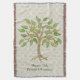 Lovely tan floral scalloped patterned grandparent's keepsake throw blanket, with graphics of a light brown tree, with big green leaves. Tan colored text, on the leaves, has the grand children's names and is fully customizable, with 27 leaves for your text. Delete any extra text fields you don't need. Makes a beautiful gift idea to any grandparent.
