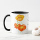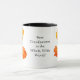 A white ringer mug with a black rim and handle, decorated with bright orange Iceland Poppies from a watercolour painting by Judy Adamson. The text, in black is 'Best Grandparents in the Whole, Wide World!'