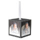 Help them celebrate the arrival of their first grandchild with this beautiful modern keepsake ornament. The charcoal gray text reads "Our first Christmas as grandparents," with the word "grandparents" in elegant handwriting script with flourishes before and after. The top, bottom and edges of the cube are a matching shade of gray. Replace the four sample images with your favorite square baby photos, and add baby's name and the year. A white gradient filter helps make the text pop.