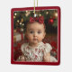 Grandparents First Christmas Grandchild Newborn Red Ceramic Ornament: Celebrate a cherished milestone with this beautiful ornament, designed to mark the first Christmas of your little one for the proud grandparents in your life. The front features a delightful photo of your baby framed in a vibrant red background with a classic white border. Accompanying this precious moment is the heartfelt text, “Our first Christmas as grandparents,” making it a true keepsake for years to come.