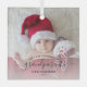 Help them celebrate their first grandchild with this beautiful modern keepsake ornament. The off-black text reads "Our first Christmas as grandparents," with the word "grandparents" in elegant handwriting script with flourishes before and after. Easily replace the sample image with your favorite photo of the new baby, and add his or her name and the year. A white gradient filter helps make the text pop.