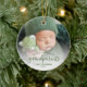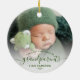 Grandparents First Christmas Photo Green Script Ceramic Ornament
