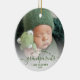 Help them celebrate their first grandchild with this beautiful modern keepsake ornament. The green text reads "Our first Christmas as grandparents," with the word "grandparents" in elegant handwriting script with flourishes before and after. Easily replace the sample image with your favorite photo of the new baby, and add his or her name and the year. A white gradient filter helps make the text pop.