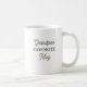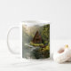 A serene coffee mug that says, "Grandpa's Favorite Mug" but the text can be personalized to any name or family member. The illustration is an a-frame log cabin out in the mountains and woods with a deer next to a rippling stream.