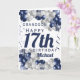 A gorgeous navy and silver balloon happy 17th birthday card. This fabulous design is the perfect way to wish your grandson a happy 17th birthday (or any age!) Personalize with our own custom name and message. Blue colored typography.