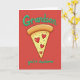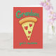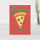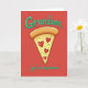 This greeting card shows a bright red background with a cartoon slice of pizza in the middle. The pizza is a neat triangle with a golden-brown crust and a pale yellow cheese layer that looks smooth and melty. Several shiny red hearts sit on top like toppings, and tiny red and black specks are scattered around to add texture. Near the top, the word “Grandson” appears in rounded green letters with a slightly raised look. Near the bottom, “you’re awesome” is written in the same rounded green lettering, making the message feel clear and friendly. It’s a sweet way to show affection because it mixes a fun food image with an honest, caring message 🥰. It would be especially meaningful for a grandson who likes a little humor along with love ❤️, and it’s a friendly way to share on Valentine’s Day