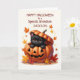 Make Halloween extra special for your grandson with this adorable design featuring a black cat peeking from a pumpkin lid surrounded by colorful fall leaves. The front allows you to personalize with your grandson’s name, creating a keepsake that feels truly his own. A playful way to send love, giggles, and Halloween cheer from grandparents who want to make the holiday memorable.