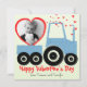 A cute Valentine's day personalized card for a little boy, featuring a tractor layered with a denim texture and a heart cutout that you can customize with a photo of your little guy. Also edit the "From" line. A great Valentine's Day card from mom and dad, grandma and grandpa, aunts, uncles, godmothers and godfathers etc.