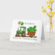Celebrate a sweet milestone with this adorable St. Patrick’s Day card for your Grandson’s very first St. Patrick’s Day! A green plaid tractor pulls a wagon overflowing with lucky shamrocks, topped with a leprechaun hat, while three shamrock balloons float cheerfully from the front. The scene is set on a charming dirt road, making it perfect for this special occasion. The front highlights "Grandson" and "1st St. Patrick's Day" in a playful design. This card is a delightful way to commemorate his first celebration with love, joy, and a little Irish luck!