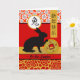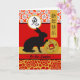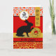 For Our Grandson, Happy Chinese New Year of the Rabbit, paper greeting card with a silhouette of a rabbit holding a Feng Shui good fortune coin. Floral elements are at the top and bottom of the card. A gold toned banner hanging down with new year message written in Chinese. A zodiac symbol for rabbit is also visible. Art, image, and verse copyright © Shoaff Ballanger Studios, 2022.