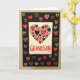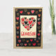 Designed with a bright white rectangular center framed by a matte black border, this card keeps the focus on a big heart made from many smaller hearts. Inside that large heart, you’ll see tiny hearts in deep red, black, light pink, and red with polka dots, packed together like a little collage of love. Some hearts are outlined while others are solid, giving the design a nice mix without feeling busy. Near the bottom of the white panel, the word “GRANDSON” appears in all-capital letters in solid red, standing out clearly against the white background. Around the black border, more hearts are scattered like confetti, including red hearts, white-outlined hearts, pink polka-dot hearts, and a few gold glitter hearts that catch the light. The overall look feels affectionate and thoughtful, like a simple way to say “you’re loved” without needing a lot of extra words 🥰. It’s especially meaningful because it speaks directly to a grandson while still feeling warm and inclusive for family love ❤️.