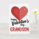 This greeting card centers on a large red heart set against a plain white background. The heart has a slightly worn, speckled texture, with small shifts in red that make it feel more human and real. Under the heart, the text reads “happy Valentine’s day…” in thin, flowing black lettering placed across the middle. At the bottom, “GRANDSON” appears in all caps in the same red as the heart, making the message feel direct and close to the heart. The simple layout keeps your attention on love and family without any distractions. It’s a meaningful choice when you want to show your grandson affection in a clear, honest way ❤️.