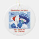 Once upon a time, there was a very special ornament for a very special little Grandson. This ornament was special because it was the little boy's very first Christmas. This is a sweet round ceramic ornament with two Snowbie characters illustrated on the front. A Snowbie boy and his snow dog. The back is illustrated with the Snowbie boy hugging the puppy and also a short Christmas verse. In soft shades of blue with touches of red, this cute round ornament will look great in a child's bedroom or on a Christmas tree. Personalize the front with your Grandchild's name and the back with the year, and you have a gift that will last forever.
