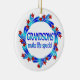 Lightweight, smooth, pure white ornament with nice sheen. Perfect size to be seen from across the room ... and to attract closer inspection! Price was great for ordering enough for the whole family! Clear, bold black design just as requested. Matches the order exactly. Just so nice!