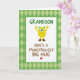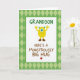 This greeting card features a white center framed by a green argyle border in two shades, giving the scene a cozy St. Patrick’s Day feel 💚. In the middle stands a one‑eyed yellow monster with small green horns and short arms stretched wide, as if leaning in for a big hug. Its single blue eye glints with friendly attention, and the wide smile makes the embrace feel easy and affectionate rather than silly. At the top, “GRANDSON” sits centered in dark green, using rounded letters that feel welcoming. Near the bottom, “HERE’S A MONSTROUSLY BIG HUG” is centered in warm brown, with “MONSTROUSLY BIG HUG” set a touch heavier for emphasis, followed by a small red heart. The bright yellow character against the white panel, plus the greens, blue, and red accents, creates a cheerful contrast that reads clearly at a glance ☘️. Share St. Patrick’s Day sentiments with someone special, and let the little red heart pop at the end of the line beneath the monster’s open arms.