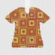 A pattern of granny squares in shades of red and yellow is a fun design for active senior citizens and their children.