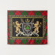 This Grant wall tapestry is a stunning piece to have in your home. Featuring framed lion supporters on either side of the clan badge and a golden thistle with crossed basket hilt claymore swords. Tapestries were hung on castle walls to keep the warm in from the cold stone behind them. Comes in all sizes.
