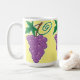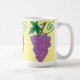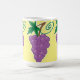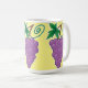 Beautiful contrasting pale yellow and purple. With dark green highlights. A bunch of purple grapes on a vine. Great gifts for wine lovers, purple and yellow natural theme. See more of our illustrated fruit line in our store!