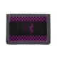 Grape and black colors chess pattern and a grape color girly skull crossbones illustration.