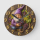 Grape-loving gnome harvest fantasy round clock