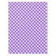 A purple and white checkerboard pattern with alternating squares, creating a balanced design. The vibrant colors give a playful, energetic feel.