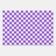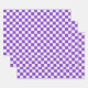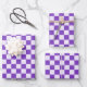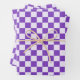A purple and white checkerboard pattern with alternating squares, creating a balanced design. The vibrant colors give a playful, energetic feel.