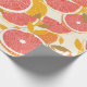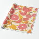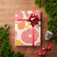 Grapefruit and halved slices with leaves on white. wrapping paper