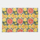 A watercolor ai illustration pattern of lemons, limes and grapefruits. Juicy citrus in coral, yellow and lime green kitchen towels.